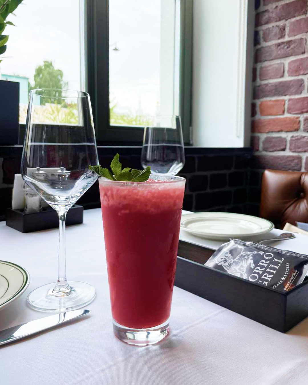 Лимонад [390/690₽] был малиновый, и, в общем, про него и нечего сказать. Обычный, не приторный, в жару — самое то.