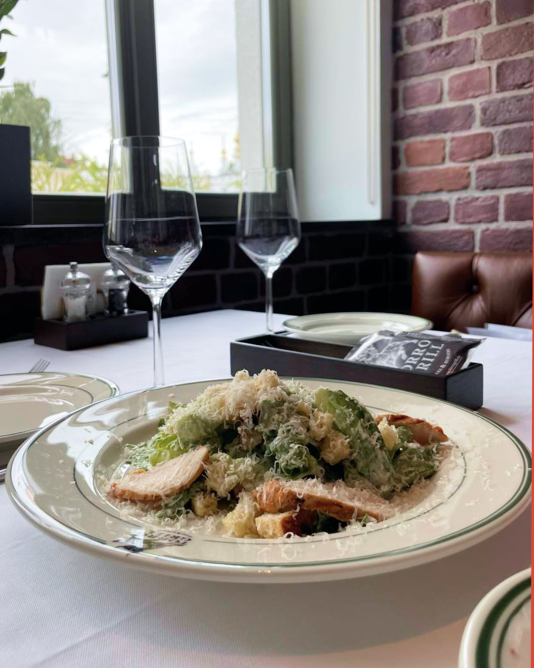 Итак, мы начали с салатов. Что бы ни случилось, «Цезарь» [550₽] всегда остается «Цезарем». В Torro Grill его делают действительно вкусно — выше среднего по городу. Основа свежайшая, кусочки курицы сочные и нежные. Соус классический, каким и должен быть.